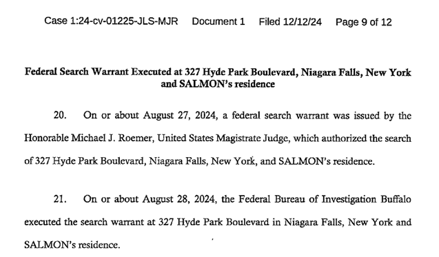 Pictured: A person named Rashawn Salmon’s house being raided by the FBI